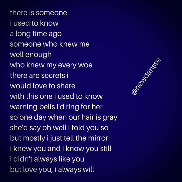 When the first two lines were written I had no idea it would end up being about me and the me I used to know.